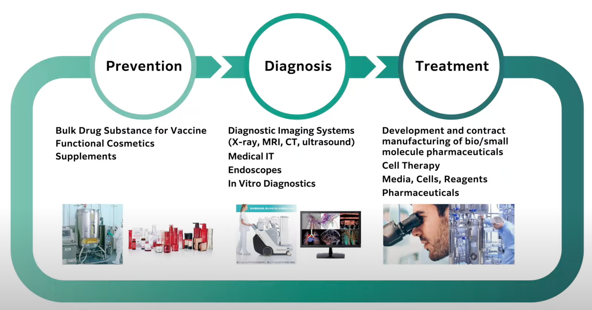 For us, the path to healthcare actually began very early on. Two years after its founding, in 1936, Fujifilm made film for X-ray machines in hospitals and in the early 80s, we launched the world's first digital X-ray in Japan before moving into digital radiography, endoscopy and healthcare IT. - Teiichi Goto, CEO