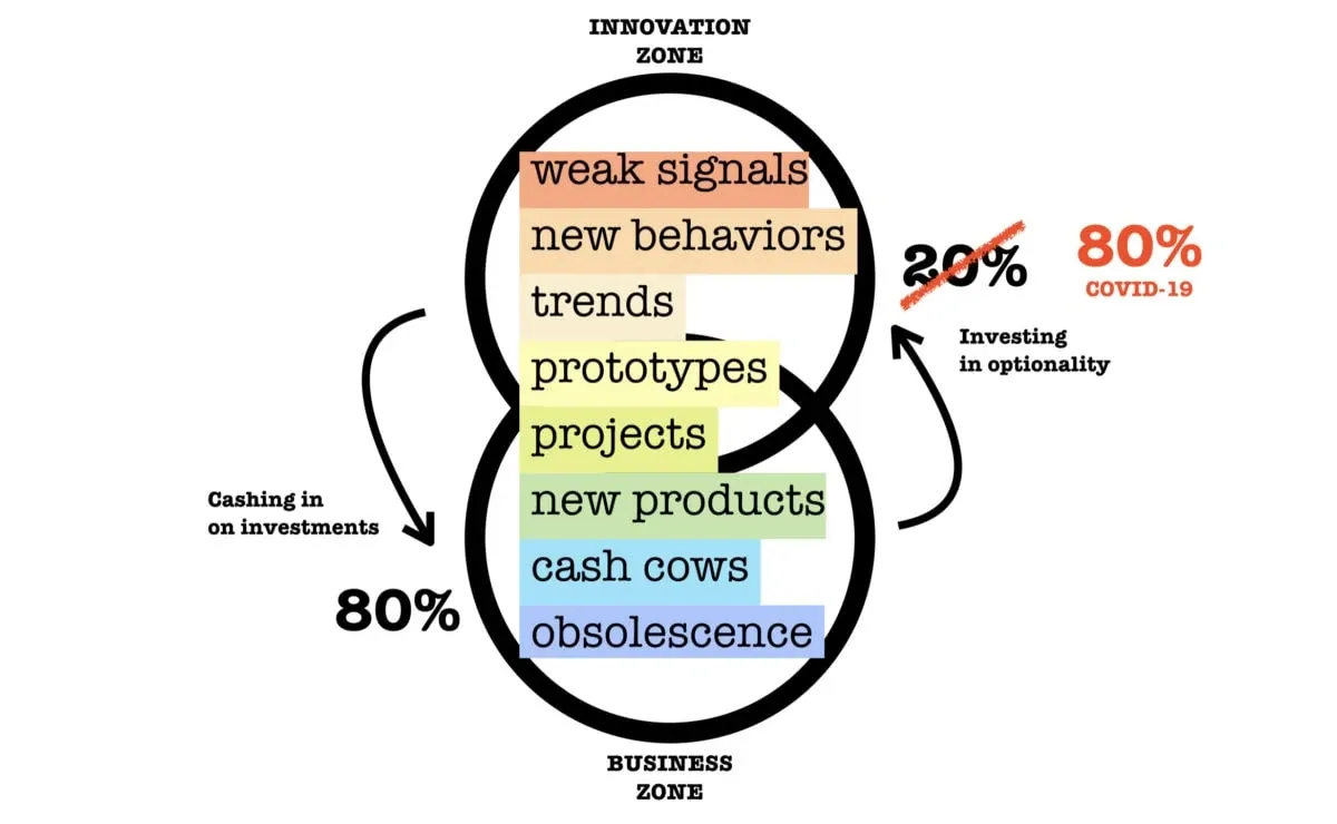 Most businesses are feeling the current impact of the Covid-19 crisis as a sales and cash-flow problem. It’s more than fair. Yet, there is an underlying impact that is probably misunderstood or not fully anticipated. You see, in normal times, there is a kind of thermodynamic equilibrium to innovation vs. business as usual. It might be very formally described and controlled if you’re a tech company, or it might be gut feeling and cost management if you’re a retailer.