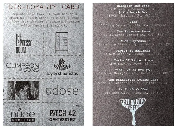 Mais cela peut aussi être mis en oeuvre pour des activités plus banales. Je suis étonné et ravi de voir apparaître des cartes d’infidélité pour les clients chez de nombreux cafés aux US et en Europe. Le principe peut sembler bizarre : vous allez consommer dans un café et recevez une carte qui vous donne un café gratuit… Si vous allez consommer neuf autres cafés chez des concurrents !