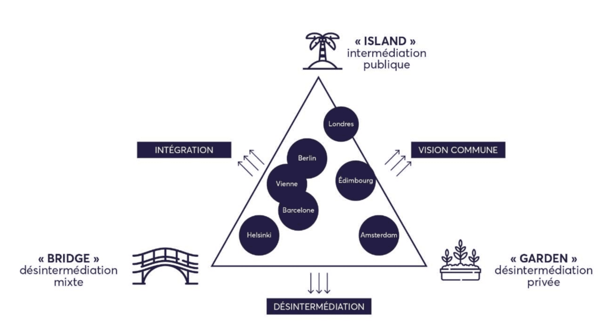 These scenarios give an envelope of possible business models, where different cities find different barycenters, with different gradients of private-public involvements, more or less disintermediation, or common goals in the different local projects: