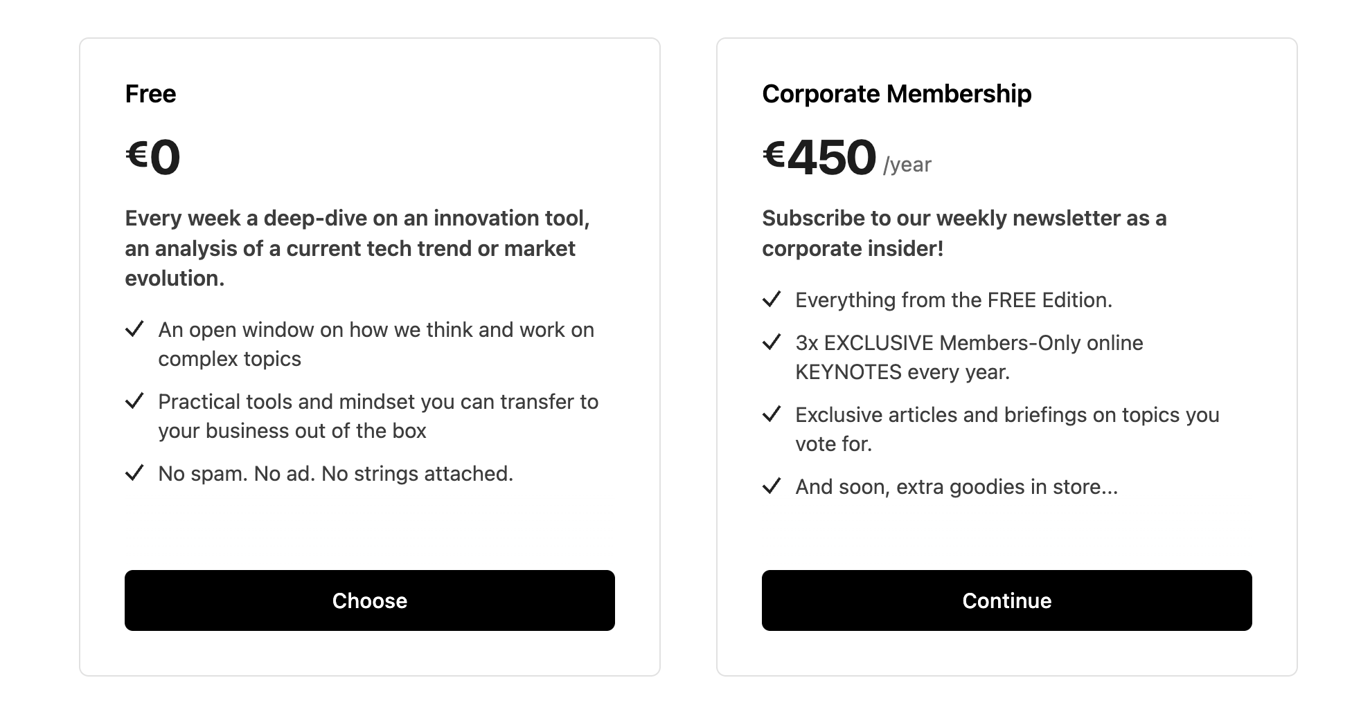 - Everything that is included with the current FREE Tier: a weekly brief on a key innovation topic, a hot take on a business issue, or a series of articles on a specific innovation practice.