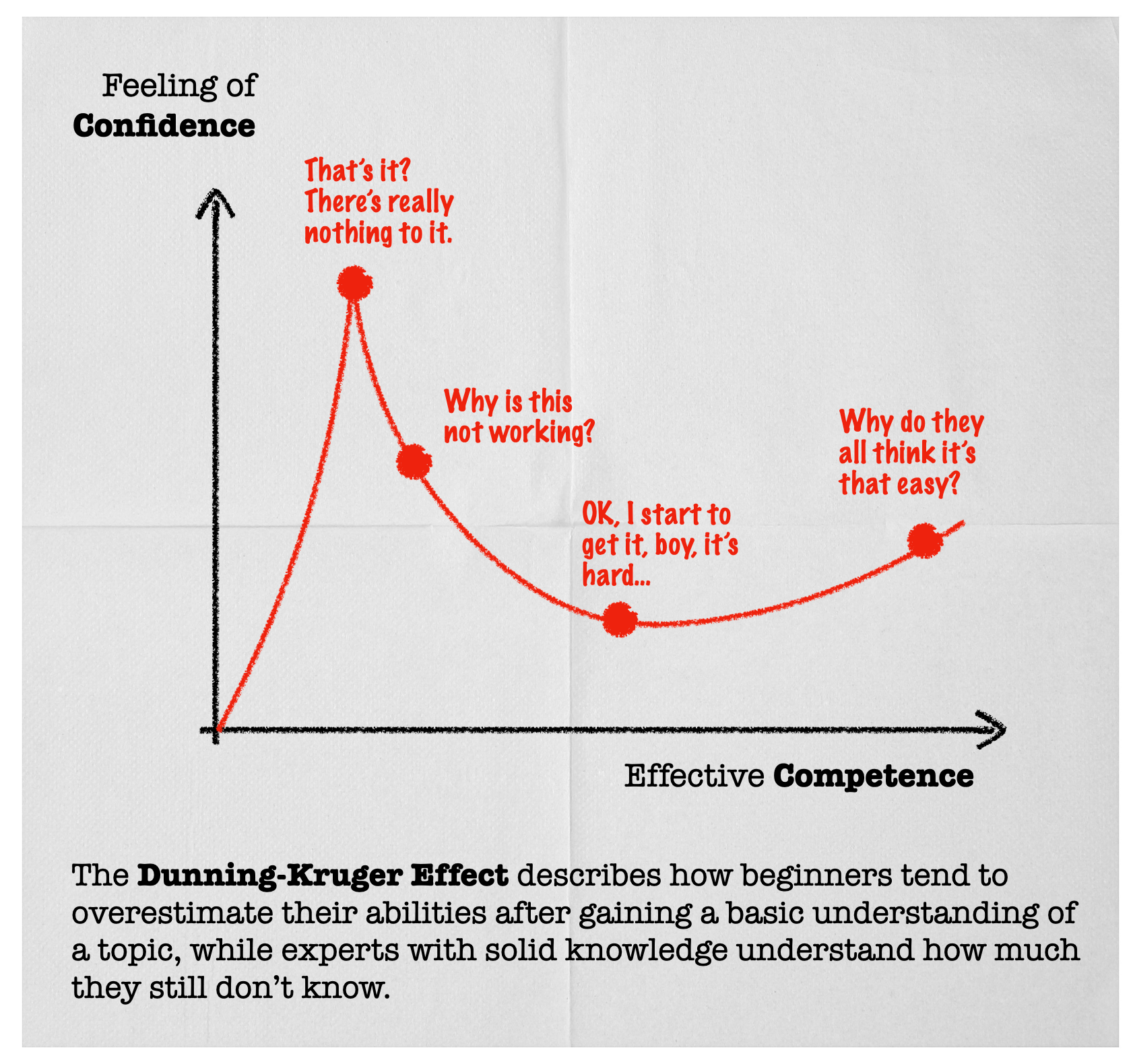 The short version is that spending a few hours filling in a Business Model Canvas (BMC) will give you the illusion of designing a disruptive strategy. You aren't. And it's not just harmless optimism, it’s textbook Dunning-Kruger effect.