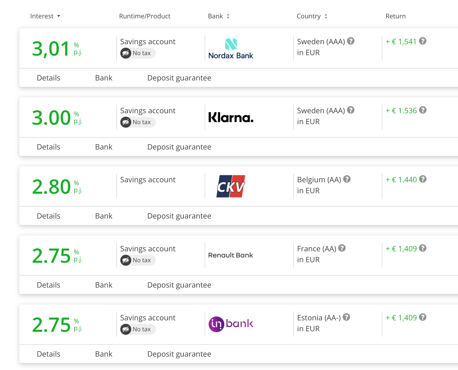 Some are still trying to get the unbundling going, though. In the context of increased interest rates and looming inflation, actors like Raisin are starting to offer comparisons on deposit or savings accounts in various banks and allow you to spread your money to various countries: