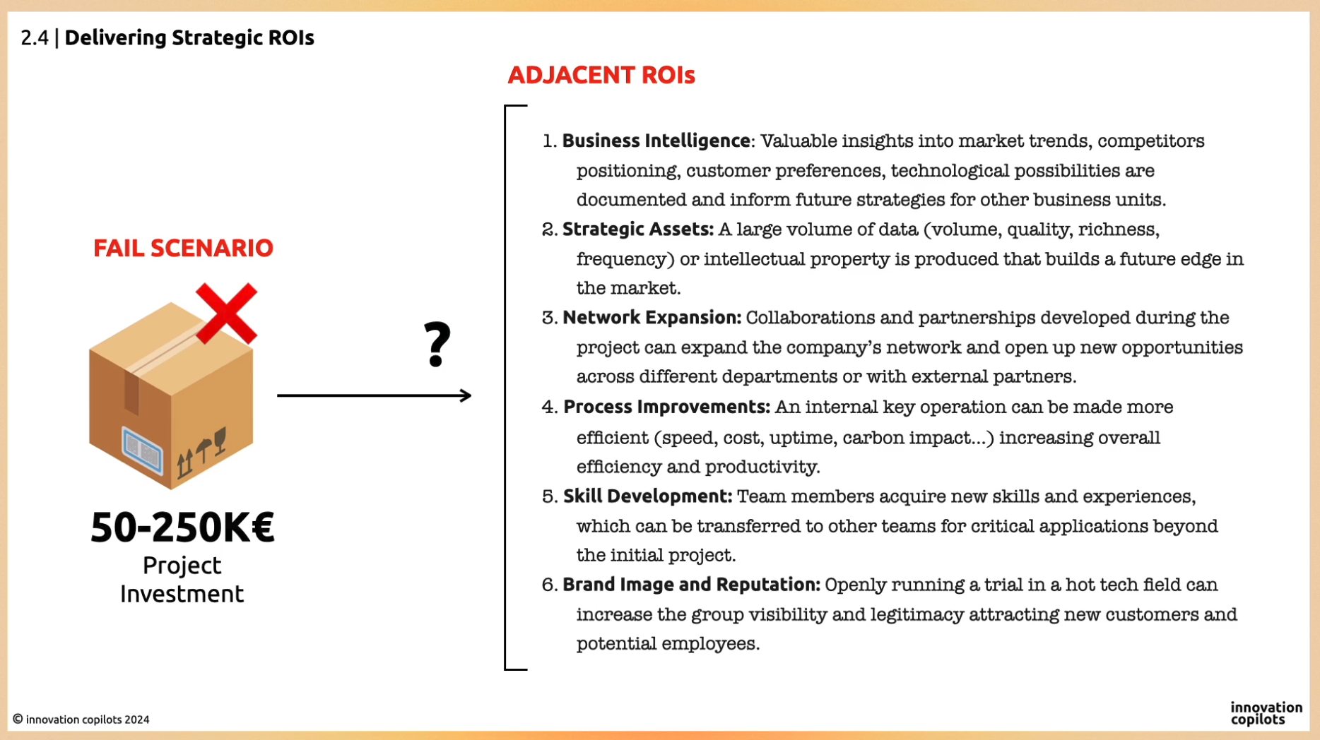 - Before it fails, will it unlock a new asset for our core business? Again: who's the internal customer, what kind of asset are we talking about (a new piece of future-proof tech, a leaner process, access to a hidden market, new customer data...), and do we make sure it's immediately transferable?